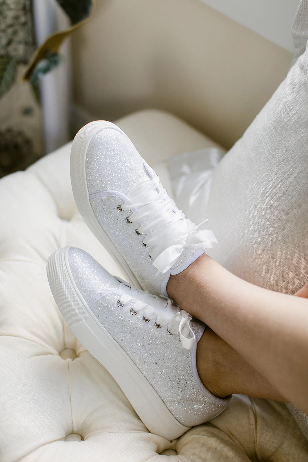 Cinderella lost her shoe on her way out of the ball but we’re not losing ours! Shoes are a huge part of your day and we’re not just talking heels. While getting ready you might consider matching slippers or flip flops with your bridesmaids but also consider shoes for after the ceremony that you can dance the night away in. We have seen tons of brides bring custom sneakers and even one bride’s mom made custom white sneakers with pieces of her mothers dress on the sneakers. You can get really creative and custom with this accessory. Heels are obviously a great choice for the ceremony but not the comfiest shoe for the whole night. We all know there’s plenty of heel options for pictures and the ceremony but we encourage you to think outside of the box to not miss out on any memorable pictures with your shoes.